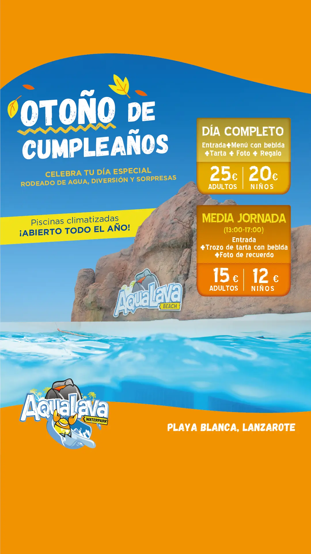 En Playa Blanca, al sur de Lanzarote, Aqualava Waterpark combina diversión y sostenibilidad en un entorno inspirado en el paisaje volcánico. Nuestras piscinas, climatizadas con energía geotérmica, te permiten disfrutar todo el año mientras tomas en cuenta el planeta.